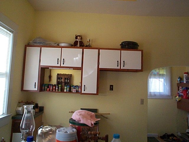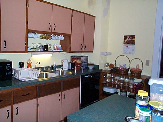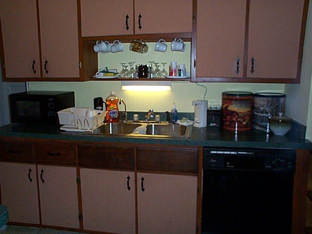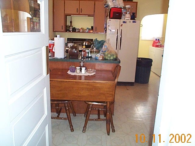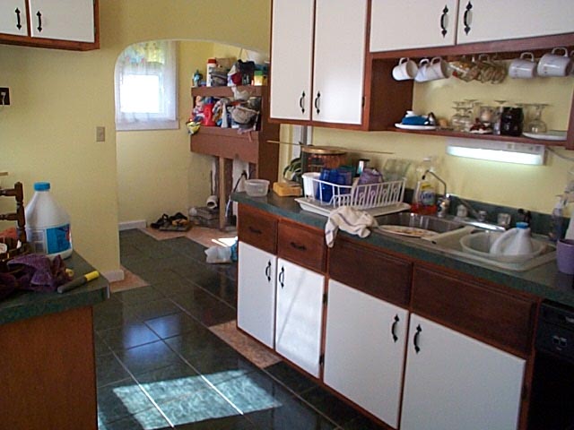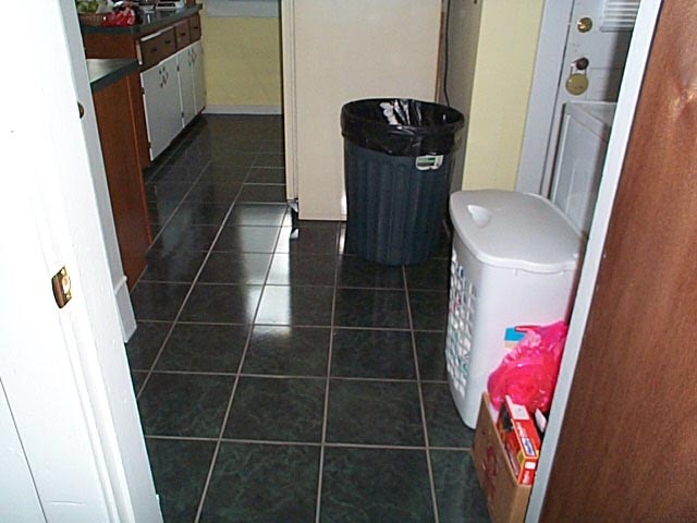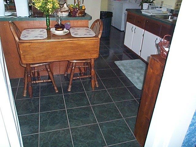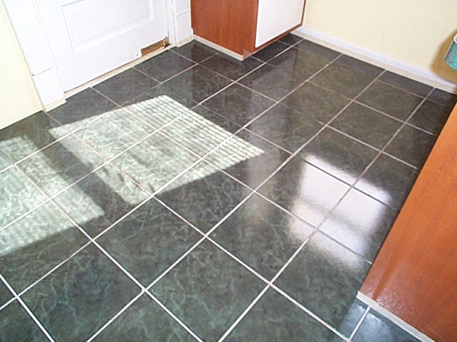 I replaced the white vinyal flooring with Dark green marble looking ceramic tiles.